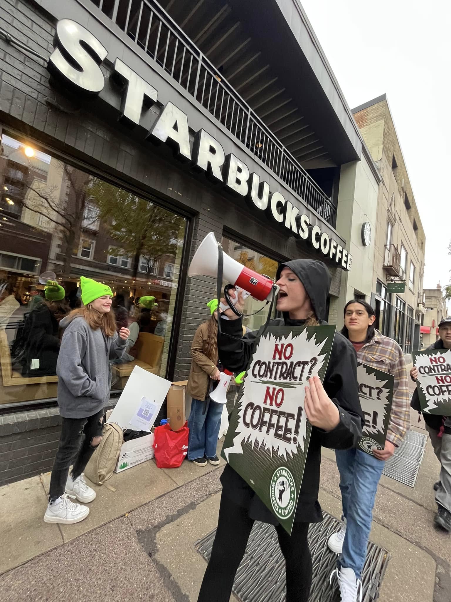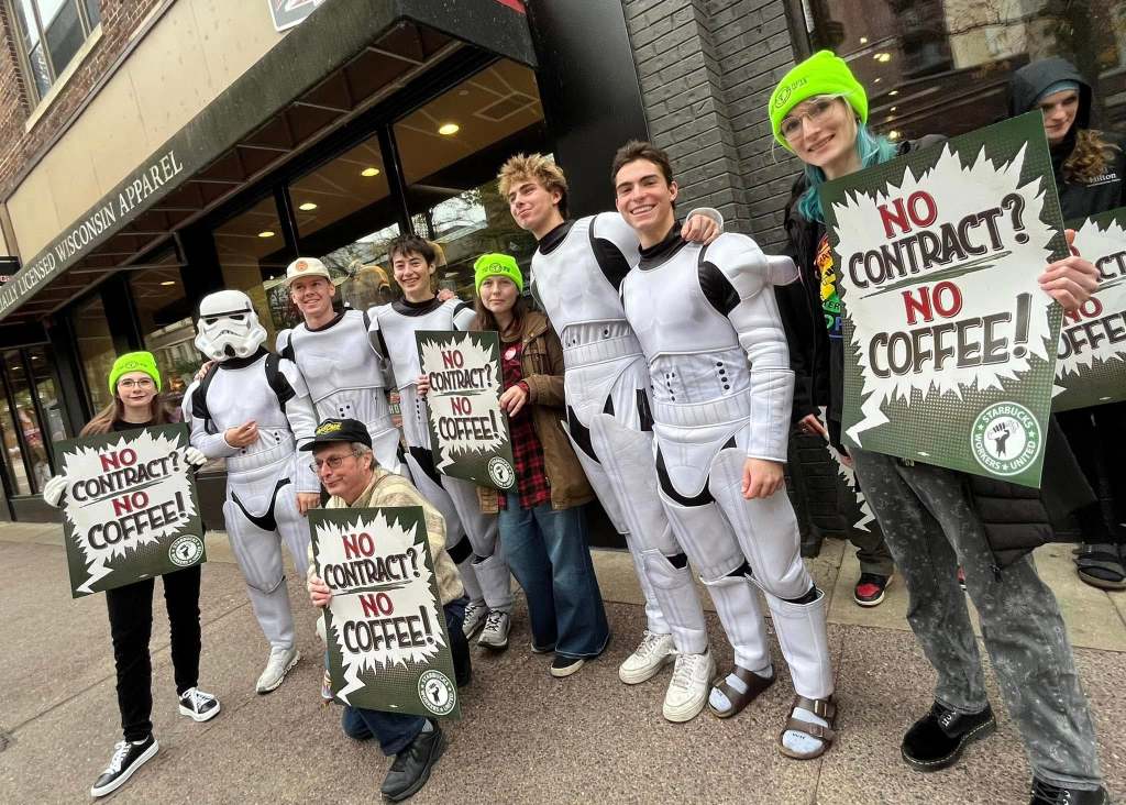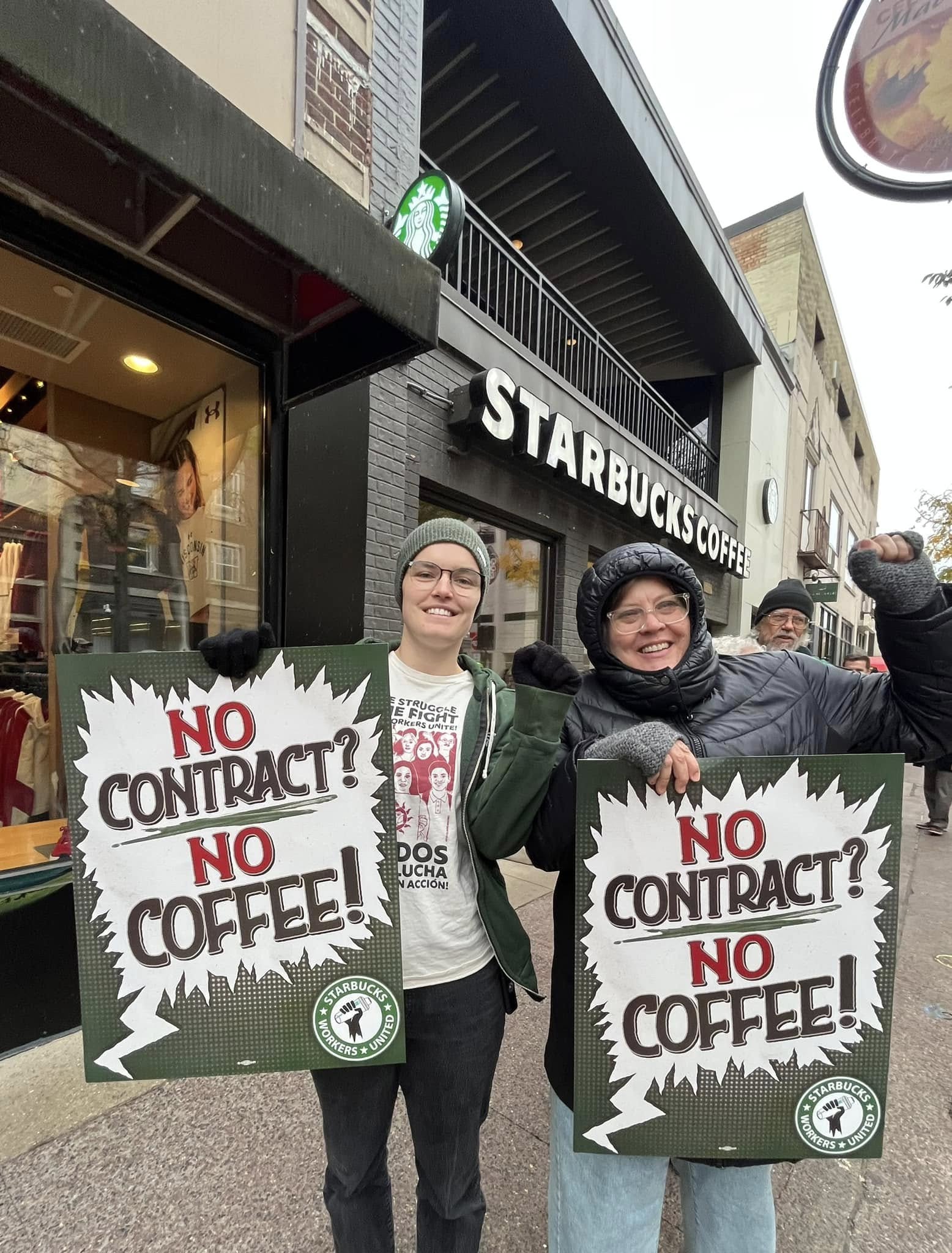 Categories Uncategorized Madison, WI: Starbucks Union Workers Hold Practice Picket With Labor and Community Supporters (Photos) Post author By WiBOPM Post date November 1, 2025 Photos 11/1/25, State Street Starbucks, Madison, WI by: Wisconsin Bail Out The People Movement SBWorkersUnited @wisswu SBWorkersUnited Share this: Click to share on X (Opens in new window) X Click to share on Facebook (Opens in new window) Facebook Like Loading... Related ← Two victories for Cuba, for life → Manitowoc, WI November 11, 2025: Veterans Against Fascism – Pop Up Protest!