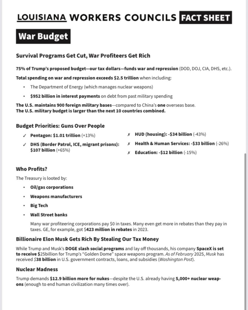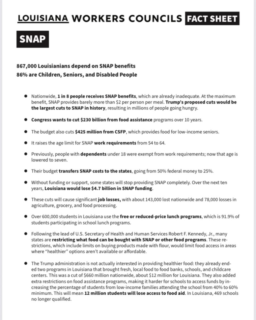 Categories Uncategorized Louisiana Workers Councils – Fact Sheets on ACA, SNAP, Social Security and Housing Cuts – Cruelty By Design – Fight Or Starve! Post author By WiBOPM Post date November 4, 2025 Louisiana Workers Councils Share this: Click to share on X (Opens in new window) X Click to share on Facebook (Opens in new window) Facebook Like Loading... Related ← Bridge Brigade Event up and Down HWY 41 During Packer Game November 10, 2025 – SNAP & Health Benefits NOW! → HEARING ALERT! – Help Stop WI Anti Trans Bill November 5, 2025 at the State Capitol
