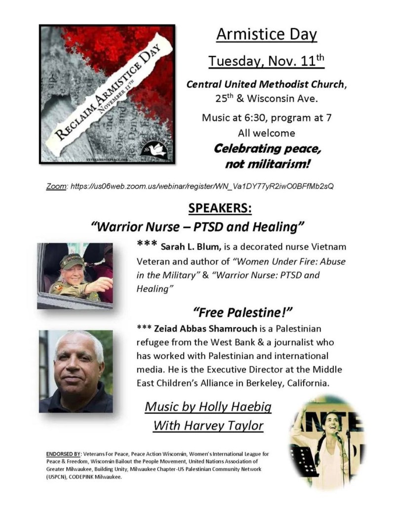 Speakers: Sarah L. Blum (Warrior Nurse: PTSD & Healing) and Zeiad Abbas Shamrouch (MECA). Music by Holly Haebig with Harvey Taylor.