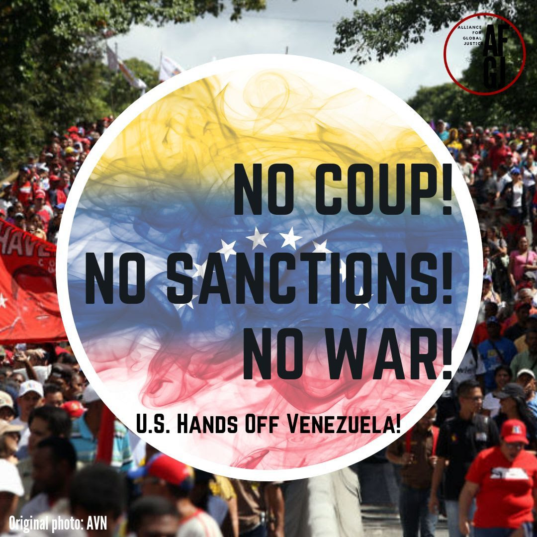 Participate in the NO WAR ON VENEZUELA, NO TROOPS IN OUR STREETS week of actions November 15-23. Follow this link to endorse, register your local events, and/or find actions near you. We can stop this war—but only if people show up!
