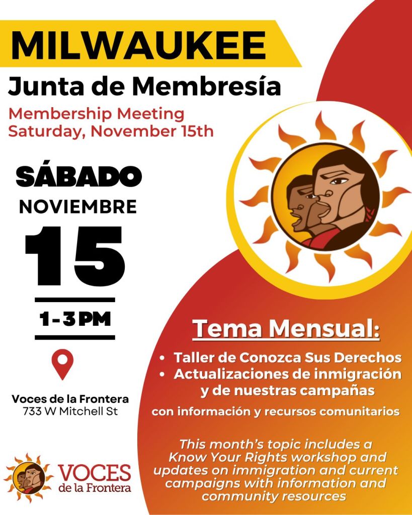THIS SATURDAY: Join the Milwaukee Chapter of Voices for a bilingual Know Your Rights session and to receive important immigration updates.