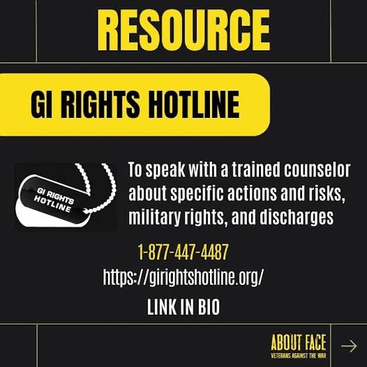 Categories Uncategorized GI Rights Hotline Post author By WiBOPM Post date November 26, 2025 https://girightshotline.org/ Share this: Click to share on X (Opens in new window) X Click to share on Facebook (Opens in new window) Facebook Like Loading... Related ← Wisconsin VS. Data Centers: STATEWIDE DAY OF ACTION, Milwaukee December 2, 2025 → Do you know how to help our immigrant neighbors? – Info Here!
