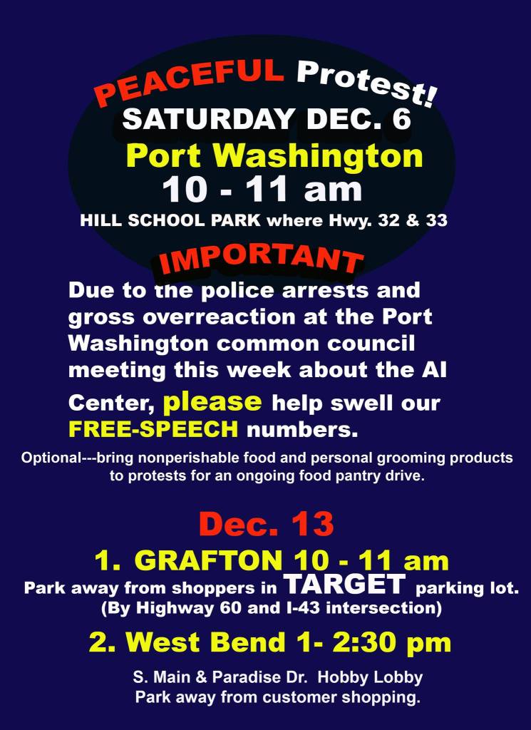 Categories Uncategorized Grafton and West Bend, WI December 13, 2025: Defend Free Speech! Protest Post author By WiBOPM Post date December 4, 2025 Great Lakes Neighbors United Screenshot Home Share this: Click to share on X (Opens in new window) X Click to share on Facebook (Opens in new window) Facebook Like Loading... Related ← Great Lakes Neighbors United Demands Port Washington Police Department, Common Council, and Mayor Respect Our First Amendment Rights! → The Big Gay Market in Madison, WI – December 19, 2025