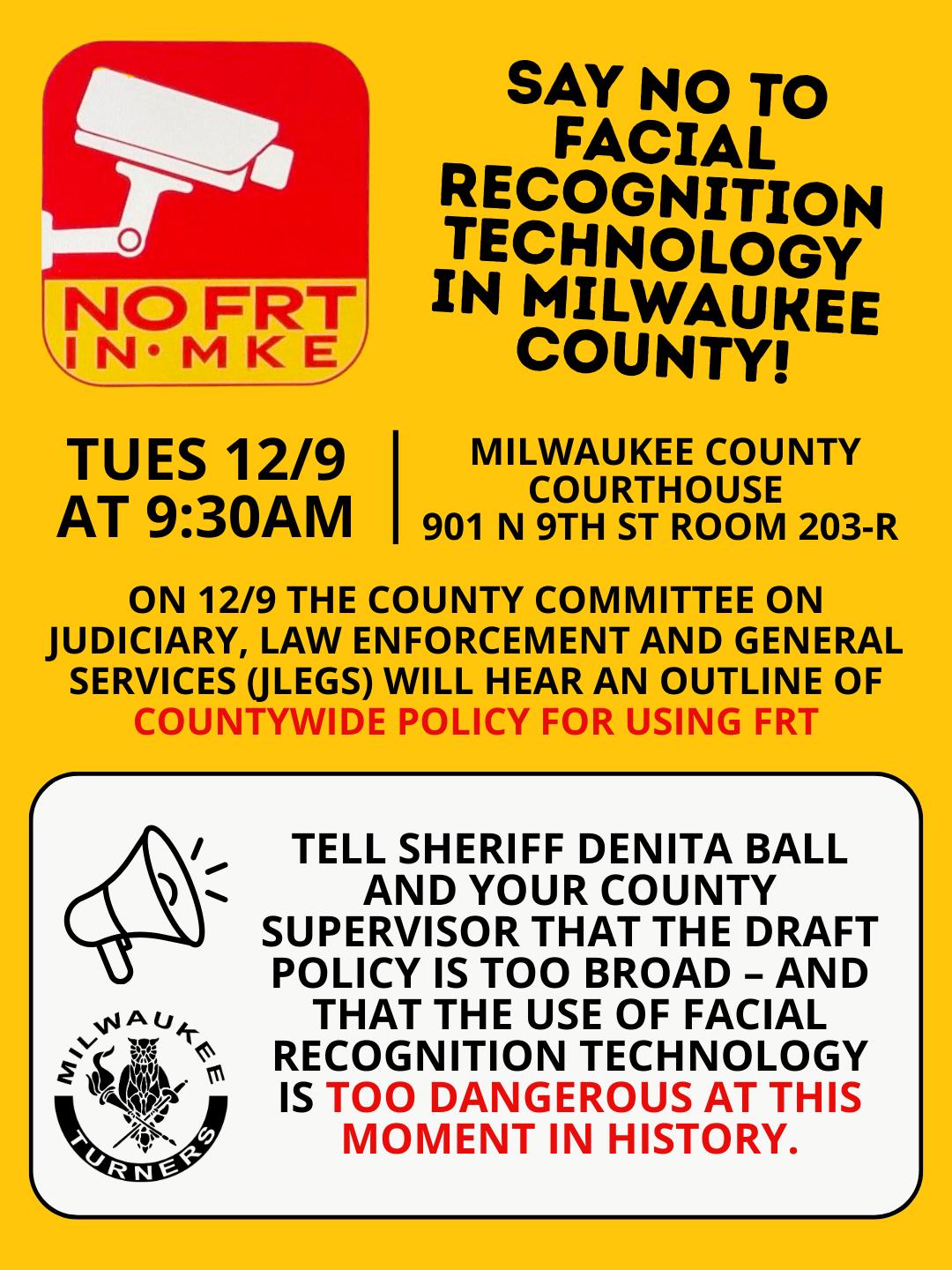Categories Uncategorized Milwaukee, December 9, 2025: Say NO to Facial Recognition Tecnology! Post author By WiBOPM Post date December 7, 2025 Milwaukee Turners at Turner Hall Share this: Click to share on X (Opens in new window) X Click to share on Facebook (Opens in new window) Facebook Like Loading... Related ← Wisconsin: Week of December 7, 2025: Stand for Peace! Actions (City Listings)