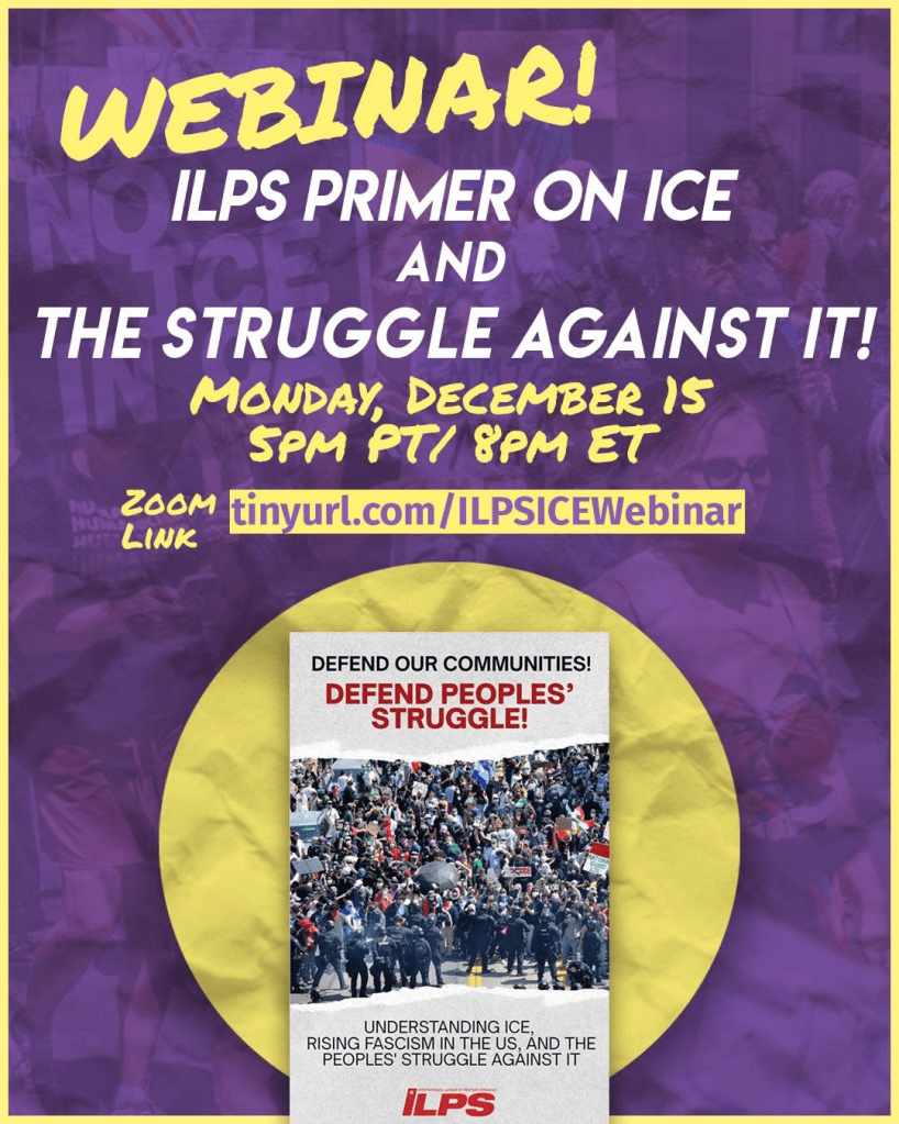 This primer details how ICE is a tool of US imperialism, the impacts of ICE on the people, and what the peoples’ struggle against ICE and for migrant justice can look like. How do we use this primer in our organizing? Join ILPS-US as we read through the primer and find the practical applications in our movement.