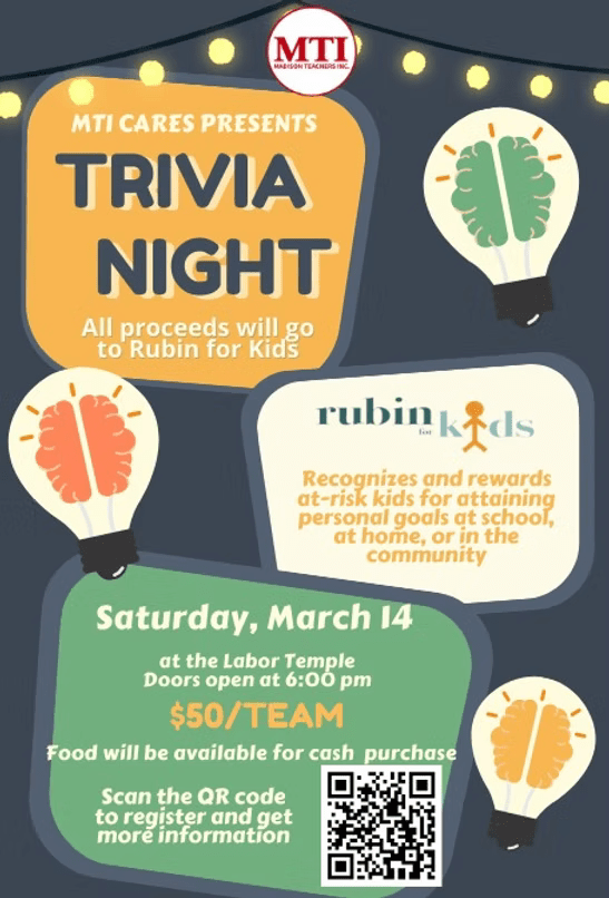 Categories Uncategorized Madison Teachers Union Trivia Night Fundraiser March 14, 2025 Post author By WiBOPM Post date December 18, 2025 Share this: Click to share on X (Opens in new window) X Click to share on Facebook (Opens in new window) Facebook Like Loading... Related ← Iron Ridge, WI, January 17, 2026: Dodge County Union Chili Dump Fundraiser for Humane Society and Food Bank(s) → Military Coups and Neo-Colonial Threats in West Africa