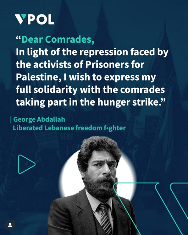 Lebanese revolutionary Georges Abdallah expressed his solidarity with Prisoners for Palestine and their ongoing hunger strike which launched on 2 November.