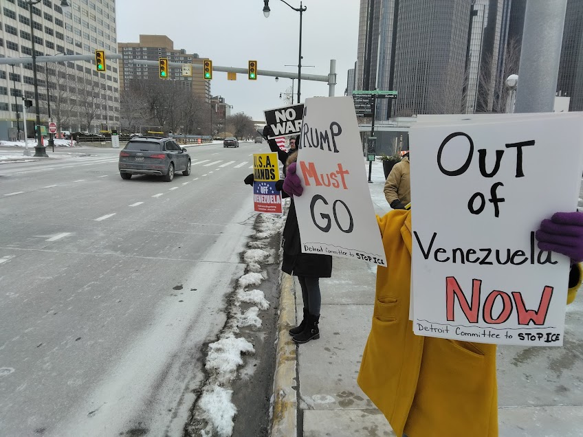 The antiwar and anti-imperialist movements stand in solidarity with the people and government of Venezuela. This action in downtown Detroit was part and parcel of similar actions across the U.S. and the world where the actions of Trump were roundly condemned.