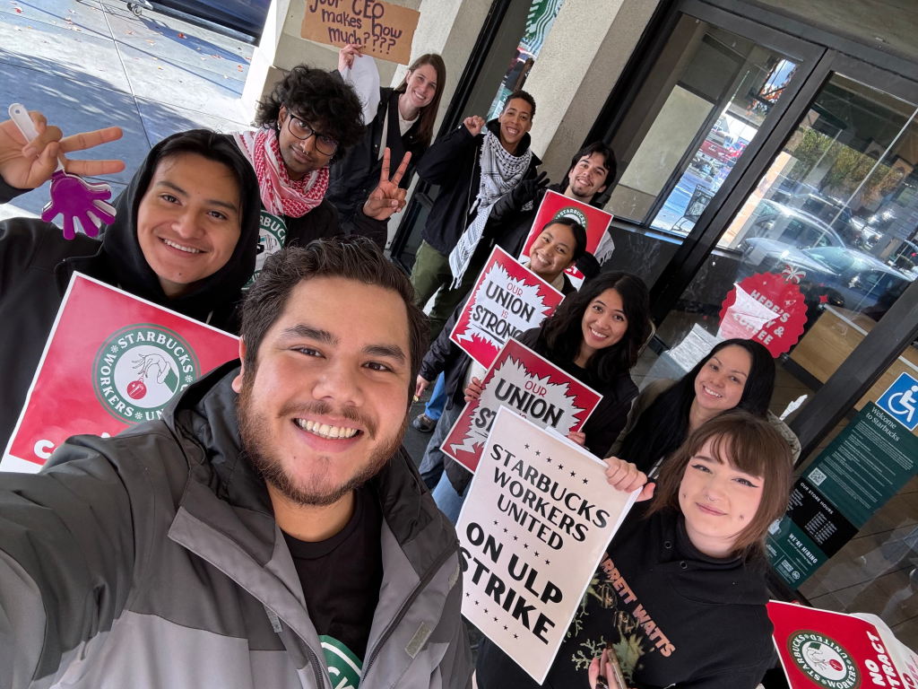 Since November, the Red Cup Rebellion has taken off across the country because people like you are showing up. For every union barista on the picket line, dozens of customers and allies have joined in solidarity, walking picket lines, showing up online and in person, and committing not to buy Starbucks. Support looks like no holiday drinks, no gift cards, and no crossing the picket line.