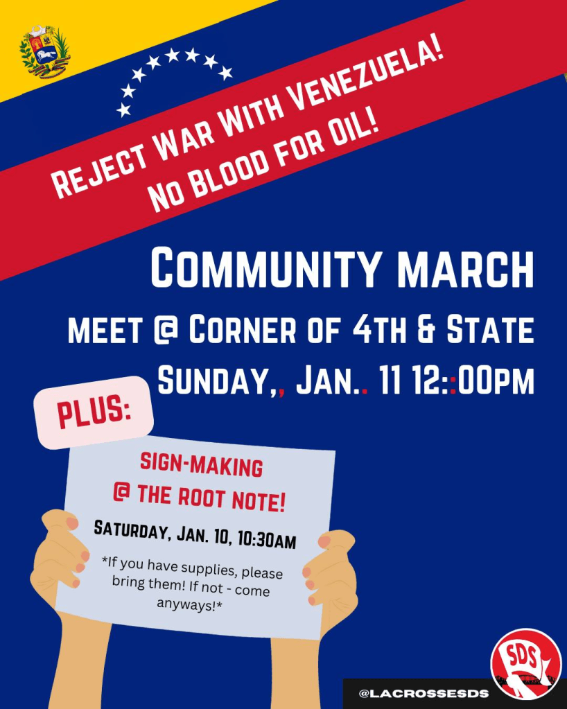 Join a coalition of students, community members, and labor activists in a community march against the invasion of Venezuela.