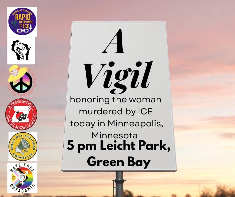 Categories Uncategorized Green Bay, January 7, 2026: Solidarity With Minneapolis! – Stop ICE/Police Murders and Repression! Post author By WiBOPM Post date January 7, 2026 Share this: Click to share on X (Opens in new window) X Click to share on Facebook (Opens in new window) Facebook Like Loading... Related ← Madison, January 7, 2026: Solidarity With Minneapolis! – Stop ICE Murders & Repression! → Hundreds In Milwaukee Protest ICE Murder in Minneapolis