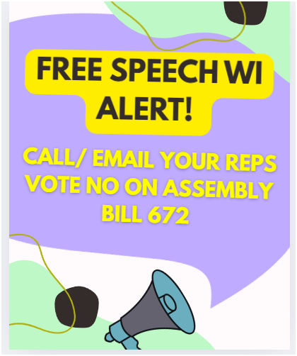 The bill would endanger the right to hold and express opinions that differ from those of the party currently in power and constitutes a grave threat to democracy and freedom of speech. Passage of AB672 would end the protections of the First Amendment in Wisconsin.