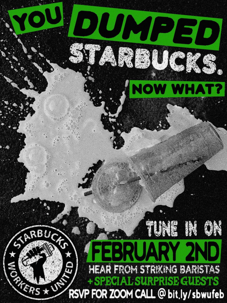 You’ve been standing with us by not buying Starbucks, and this call is the moment to lean in further. Hear directly from striking baristas and lock in for what comes next.