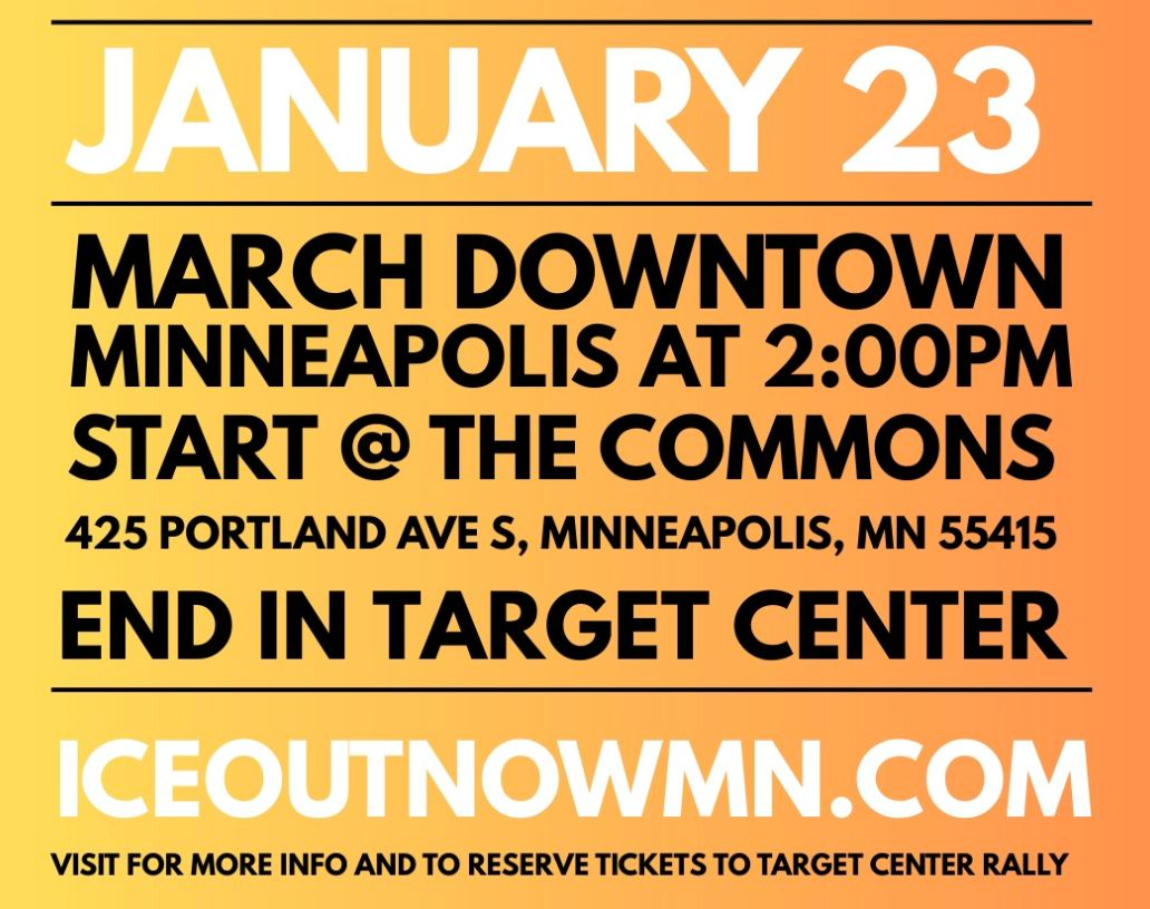 Categories Uncategorized MINNEAPOLIS, JANUARY 23, 2026: ICE OUT OF MN! DAY OF TRUTH & FREEDOM! Post author By WiBOPM Post date January 23, 2026 Event: https://www.facebook.com/share/17rf8whwie/ SEIU Local 26 Minneapolis Regional Labor Federation Share this: Share on X (Opens in new window) X Share on Facebook (Opens in new window) Facebook Like Loading... Related ← MAP: Minneapolis General Strike Movement Spreads to 215 Cities on Friday → St. Paul, MN: ‘Day of Truth & Freedom’ Kicks Off With Early Morning Union Info Picket in Bitter Cold