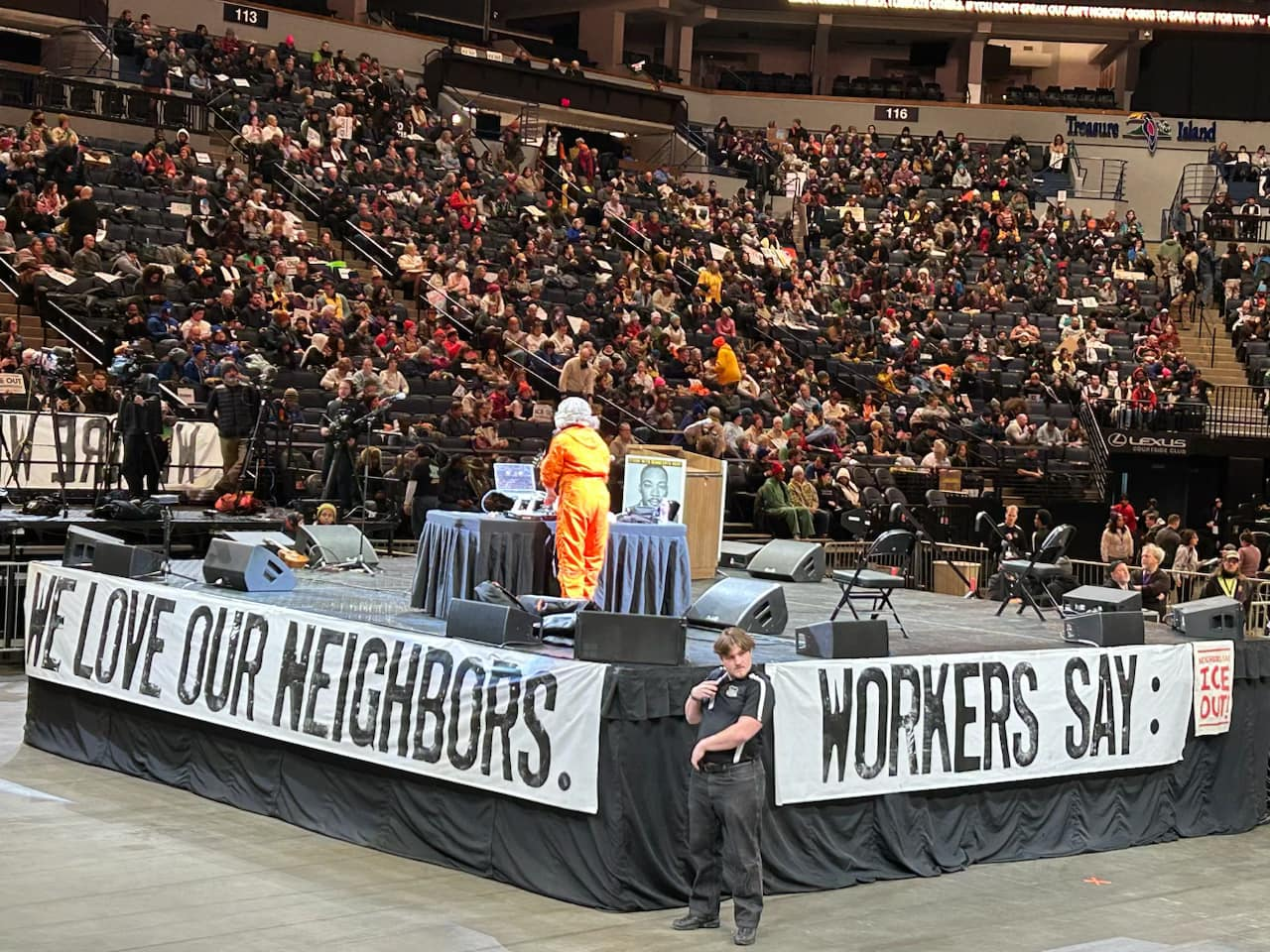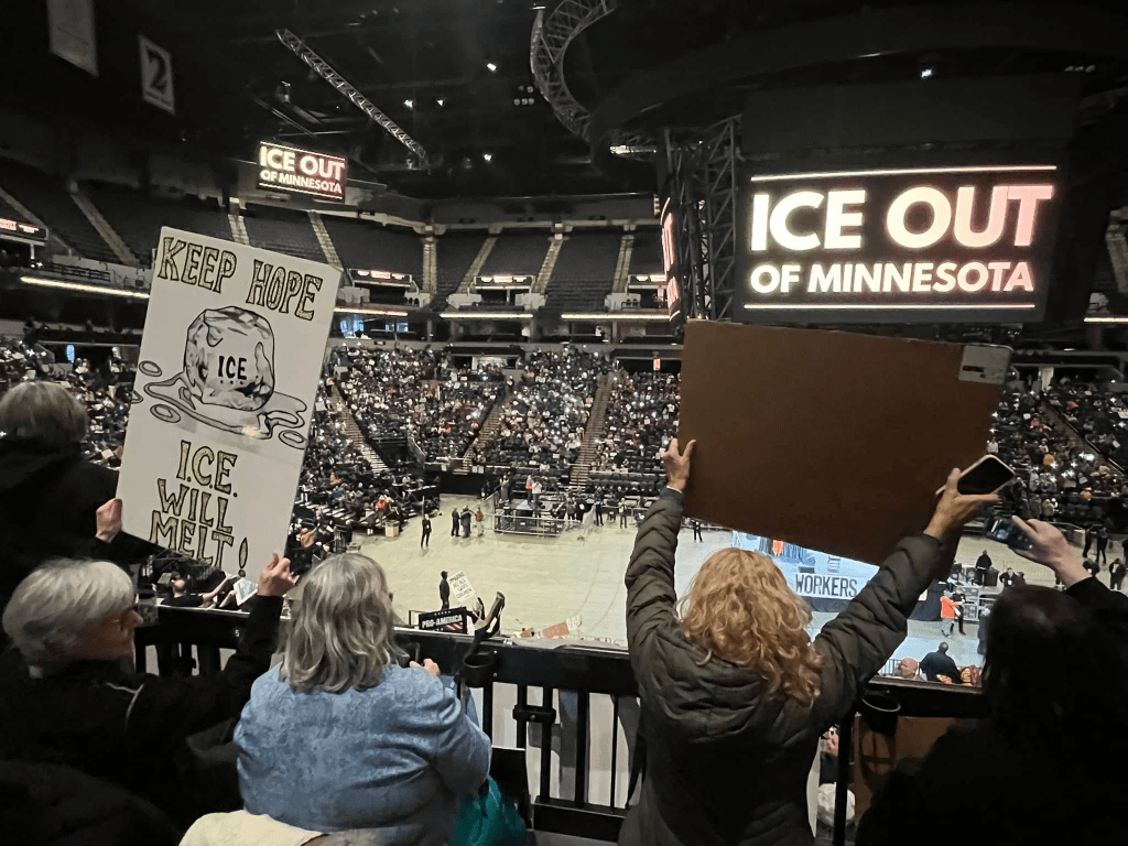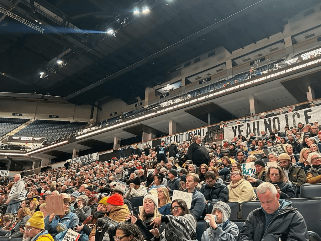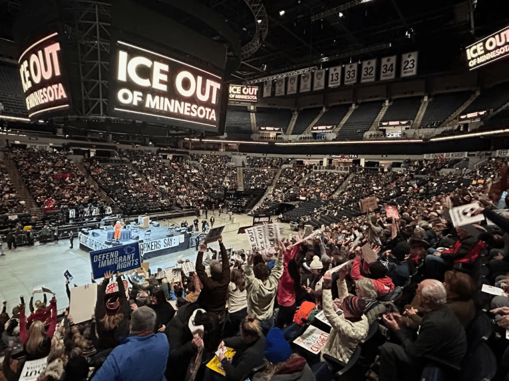 Categories Uncategorized Minneapolis: Thousands Rally at Downtown Arena to Demand: ICE Out Now! – Money for People’s Needs Now! Post author By WiBOPM Post date January 23, 2026 Thousands rally at Minneapolis at downtown arena 1/23/26. Photos by: Wisconsin Bail Out The People Movement Share this: Share on X (Opens in new window) X Share on Facebook (Opens in new window) Facebook Like Loading... Related ← MKE LABOR stands with MN! – ICE Out of Our Cities! → Tens of Thousands in Minneapolis and St. Paul, MN Strike, Join Picket Lines, Shut Down Businesses and Rally January 23, 2026