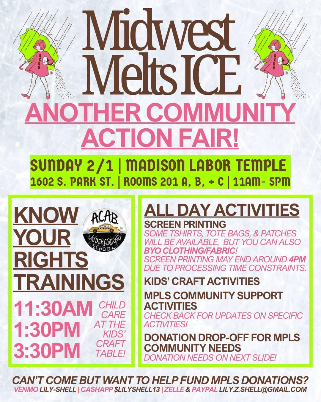Categories Uncategorized Madison, Feb. 1, 2026: Community Action Fair! – MN Support Activities, Art Build, Know Your Rights, Donations Post author By WiBOPM Post date January 27, 2026 Share this: Share on X (Opens in new window) X Share on Facebook (Opens in new window) Facebook Like Loading... Related ← Health Care Workers Unite! Honor Alex J. Pretti, RN – Stop ICE! – Feb. 3, 2026 → UW Madison, January 30, 2026: ICE Out of Our Communities & Work Sites! – A Day of Truth & Freedom!