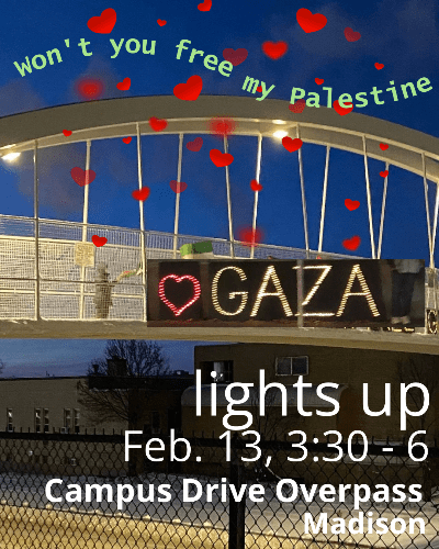 Categories Uncategorized Wisconsin: Stand for Peace! Free Palestine! Stand With Iran and Venezuela! (City Listings) Feb. 9-15, 2026 Post author By WiBOPM Post date February 8, 2026 Click here to see a listing and details of recurring vigils across the state. Share this: Share on X (Opens in new window) X Share on Facebook (Opens in new window) Facebook Like Loading... Related ← National Lawyers Guild: ICE Watch Legal Website