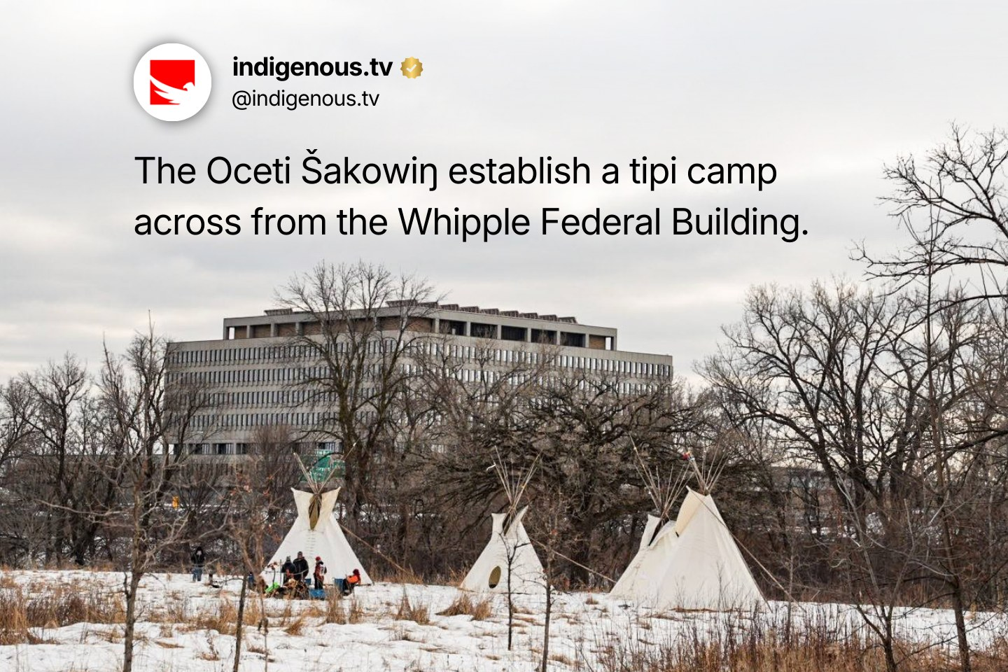 Dakota and Lakota community members have established a tipi prayer camp at Mni Owe Sni (Coldwater Springs), a sacred site where Dakota people have gathered for generations.