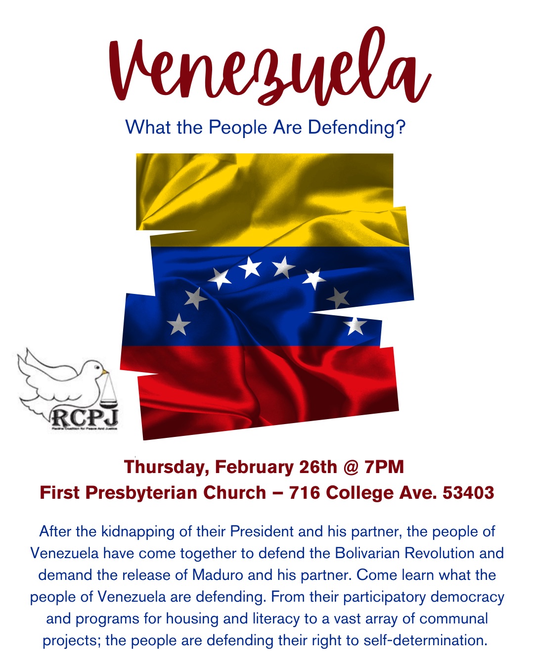 Categories Uncategorized Racine, Feb. 26, 2026: Venezuela – What the People Are Defending Post author By WiBOPM Post date February 18, 2026 Share this: Share on X (Opens in new window) X Share on Facebook (Opens in new window) Facebook Like Loading... Related ← Call To Action Weekend in Madison Feb. 20-22, 2026: No ICE! Immigrants Welcome Here! Build People’s Power! → Black Writers and the Emancipatory Struggles of the Antebellum Period