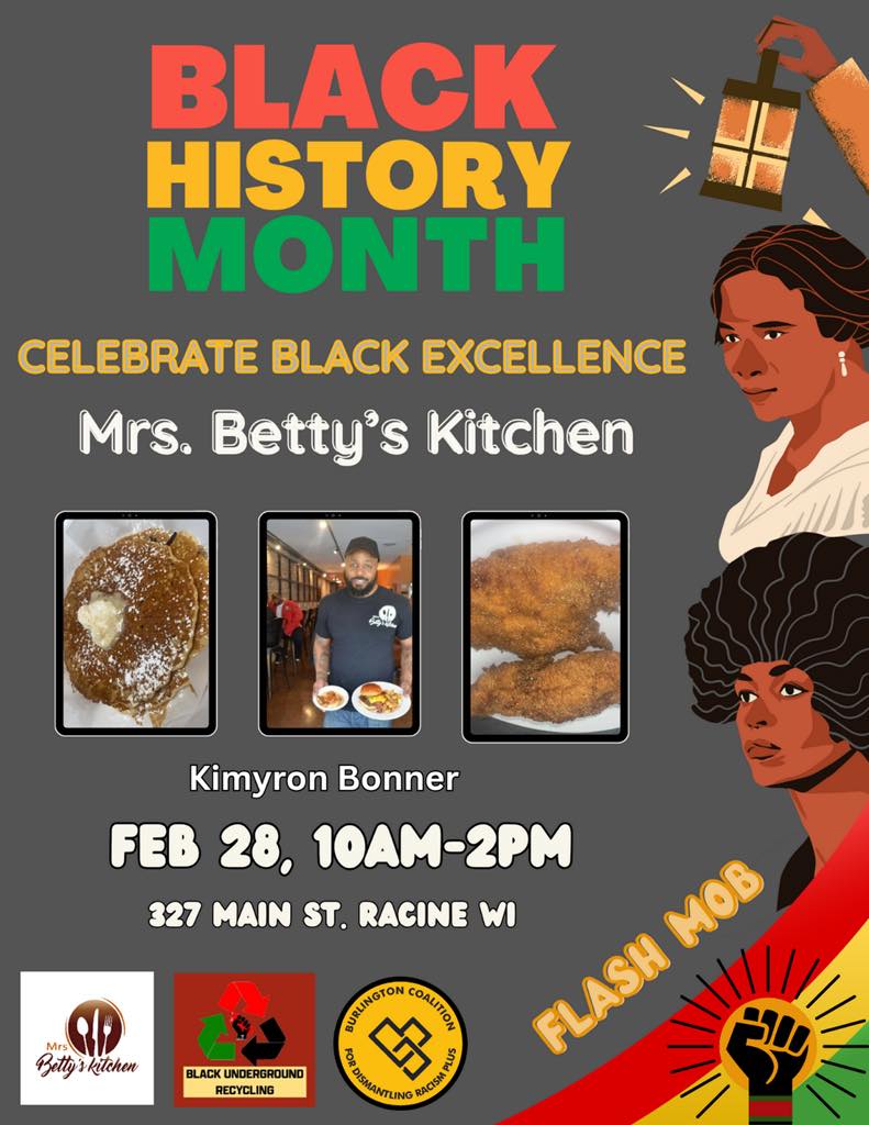 Categories Uncategorized Racine, Feb. 28, 2026: Black History Month at Mrs. Betty’s Kitchen Post author By WiBOPM Post date February 19, 2026 Mrs Betty’s kitchen Black Underground Recycling BCD Racism Share this: Share on X (Opens in new window) X Share on Facebook (Opens in new window) Facebook Like Loading... Related ← ESSAY: Resurrection City: The Dream…The Accomplishments, Jesse Jackson, 1968