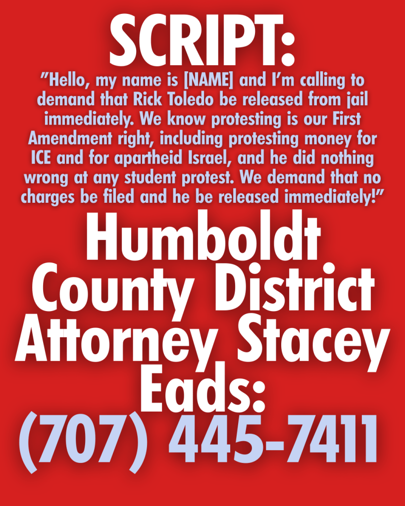 Call In to Humboldt District Attorney: Free Rick Toledo Now! Protesting for Palestine Is Not a Crime!
