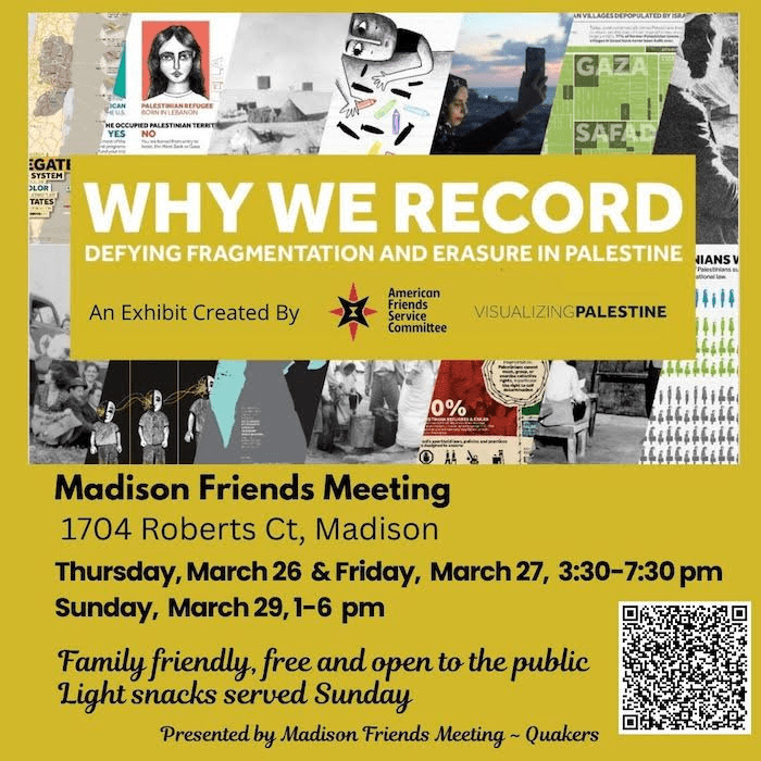 Madison Friends Meeting ~ Quakers invites the public to view Why We Record, March 26 – 29th at Madison Friends Meeting, 1704 Roberts Ct., Madison.