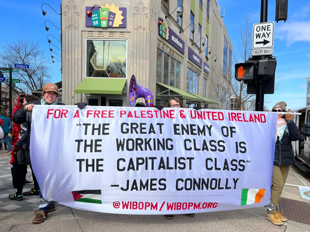 Categories Uncategorized Madison, Join Anti-War Contingent in the St. Patricks Day Parade March 15, 2026 Post author By WiBOPM Post date March 11, 2026 March 16, 2025 Madison, WI. / Photo: Wisconsin Bail Out The People Movement Share this: Share on X (Opens in new window) X Share on Facebook (Opens in new window) Facebook Like Loading... Related ← Text of South African President Cyril Ramaphosa’s Speech at Rev. Jesse Jackson’s Memorial (With Photos) → Madison, March 19, 2026: Fundraiser for Voces de la Frontera