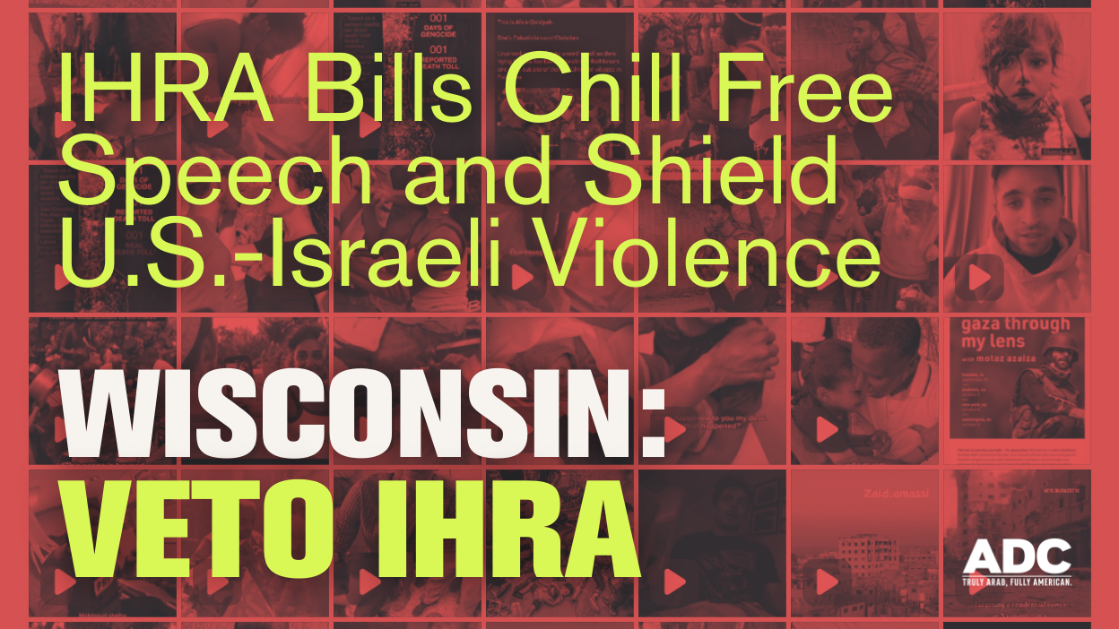 | Dear Friends We need your immediate action. Wisconsin has called for a Senate vote on IHRA tomorrow. If it passes the Senate, it will go straight to the Governor’s desk. That means the window to stop this is closing fast. Last week, ADC, alongside 40 coalition partners, urged Governor Evers, the Wisconsin Senate, and the Assembly to reject SB445 and AB446 in their entirety. That coalition letter was endorsed by the American Civil Liberties Union of Wisconsin. The message was clear: civil rights laws must protect all communities and uphold the First Amendment, not distort it to shield Israeli policy from criticism and punish lawful political advocacy. ADC is urging members to call and email senators immediately and demand they oppose SB445 and AB446. Take Action Now This fight is bigger than Wisconsin. Anyone can fill out this action alert. These bills are spreading, and they have already appeared in other states. What happens in Wisconsin will not stay in Wisconsin. If this moves forward here, it will be used as a model elsewhere to suppress speech, chill advocacy, and punish lawful criticism of Israel. Our message is simple: Reject SB445 and AB446 entirely. Protect free speech, constitutional civil rights, and the integrity of Wisconsin law. The most important senators to contact right now are: Definite No (hold the line): Drake, Johnson, Larson, Roys, Ratcliff, KeyeskiLeaning No (must be reinforced): Smith, Spreitzer, Carpenter Uncertain: Dassler-AlfheimPotentially movable: Pfaff, Wirch, Hesselbein, Wall, Habush-Sinykin Please make your calls and send your emails today. Share this alert with family, friends, and anyone who believes in protecting free speech and civil rights. |