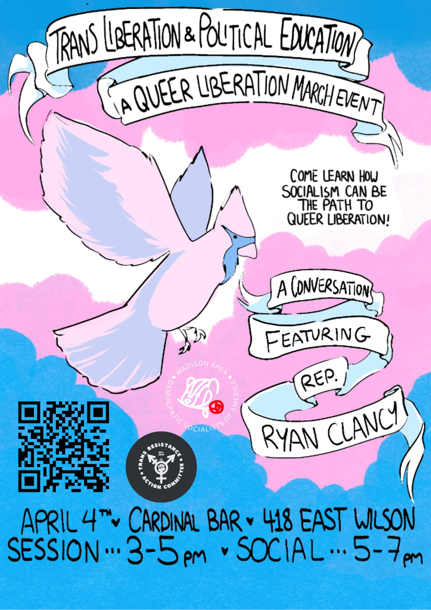 Categories Uncategorized Madison, April 4, 2026: Trans Liberation & Political Education Post author By WiBOPM Post date April 3, 2026 Trans Resistance Action Committee Share this: Share on X (Opens in new window) X Share on Facebook (Opens in new window) Facebook Like Loading... Related ← Madison, May Day Strong Solidarity School April 11, 2026