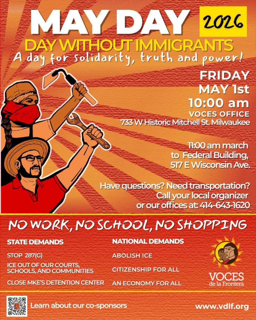Friday, May 1, join Voces De La Frontera and coalition partners for a national day of action in Milwaukee to demand justice, dignity, and protections for immigrant workers and their families.