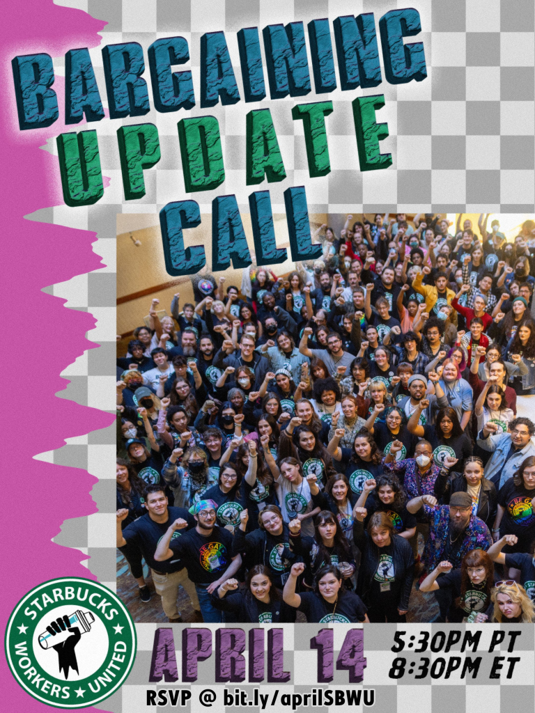 On the call, you’ll hear directly from baristas on where bargaining stands and how you can help push it over the finish line. We’ll also talk through our upcoming Day of Action.