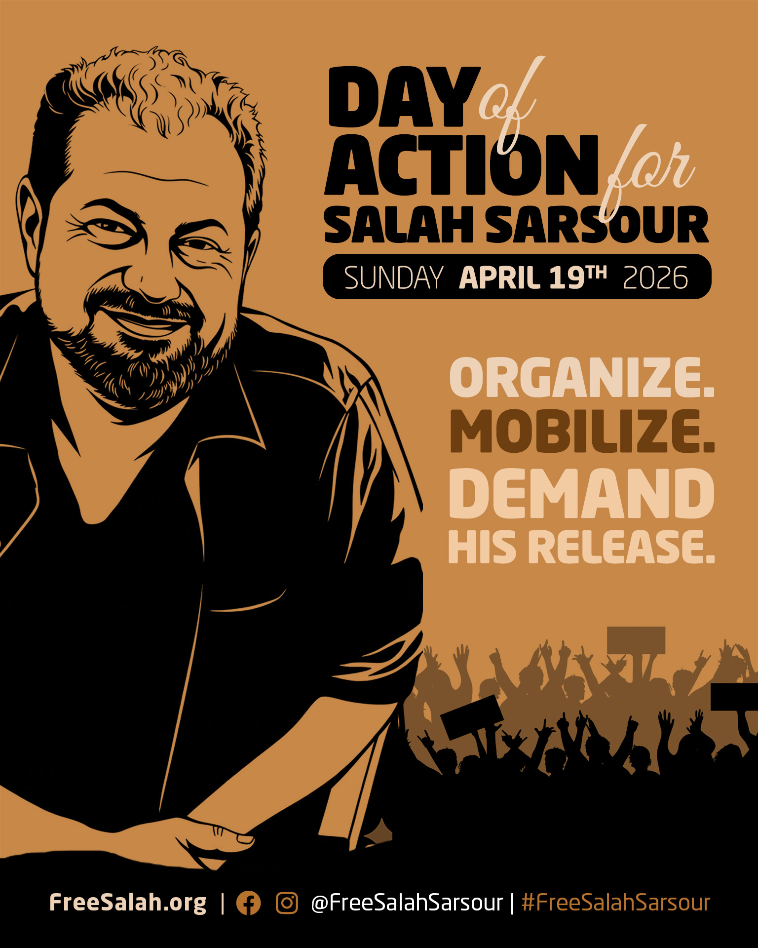 We’re calling for folks to organize an action/event: rally, town hall, letter-writing campaign, banner drop, and whatever you can do to show support to #FreeSalahSarsour and uplift his story. We want to see as many cities as possible.