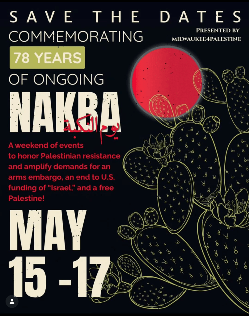 We also ask that you save the dates of May 15-17 for a weekend of events to commemorate 78 years of the ongoing Nakba in Palestine. Our vision for this weekend includes uplifting our demands to end the genocide & occupation of Palestinians, as well as creating inter-generational community spaces to share our stories, grief, and hopes with one another. More details will be announced soon.
