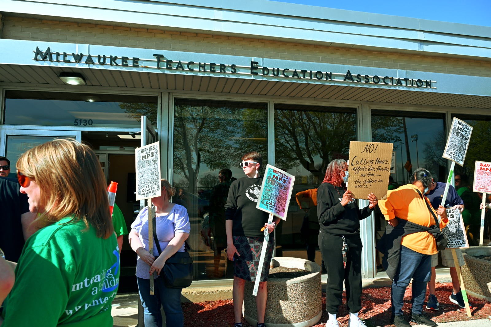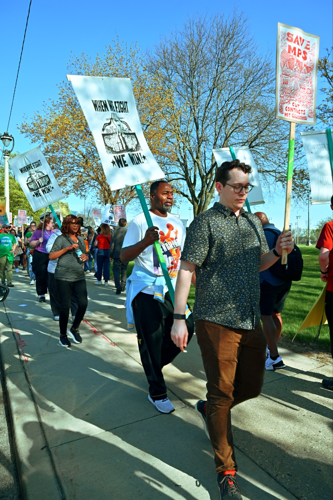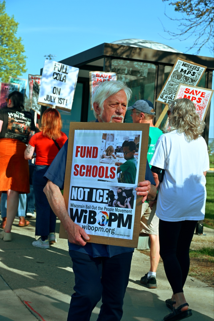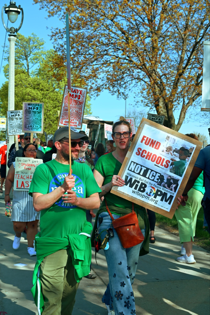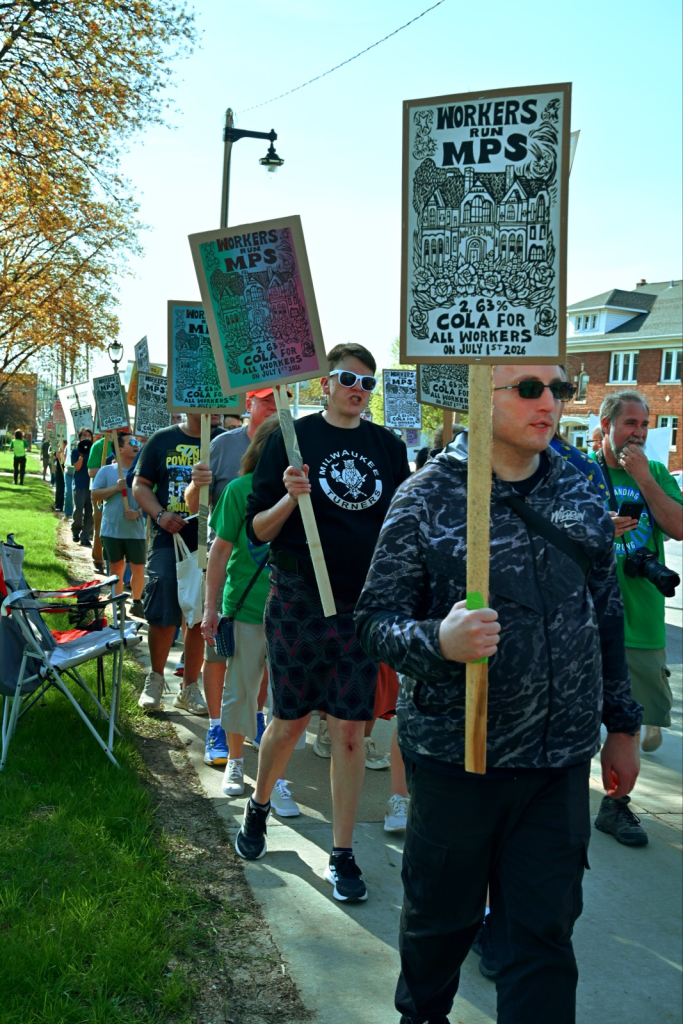 Categories Uncategorized Milwaukee Teachers, Students, Labor and Community Supporters March to Demand Wage Increases and Better Conditions Post author By WiBOPM Post date April 23, 2026 April 23, 2026 All Photos by Wisconsin Bail Out The People Movement Action sponsored by the MTEA and supported by many labor, community and student organizations Share this: Share on X (Opens in new window) X Share on Facebook (Opens in new window) Facebook Like Loading... Related ← WI BOPM 15th Anniversary Celebration April 25, 2026 in Madison: Speakers, Drag Show & More!