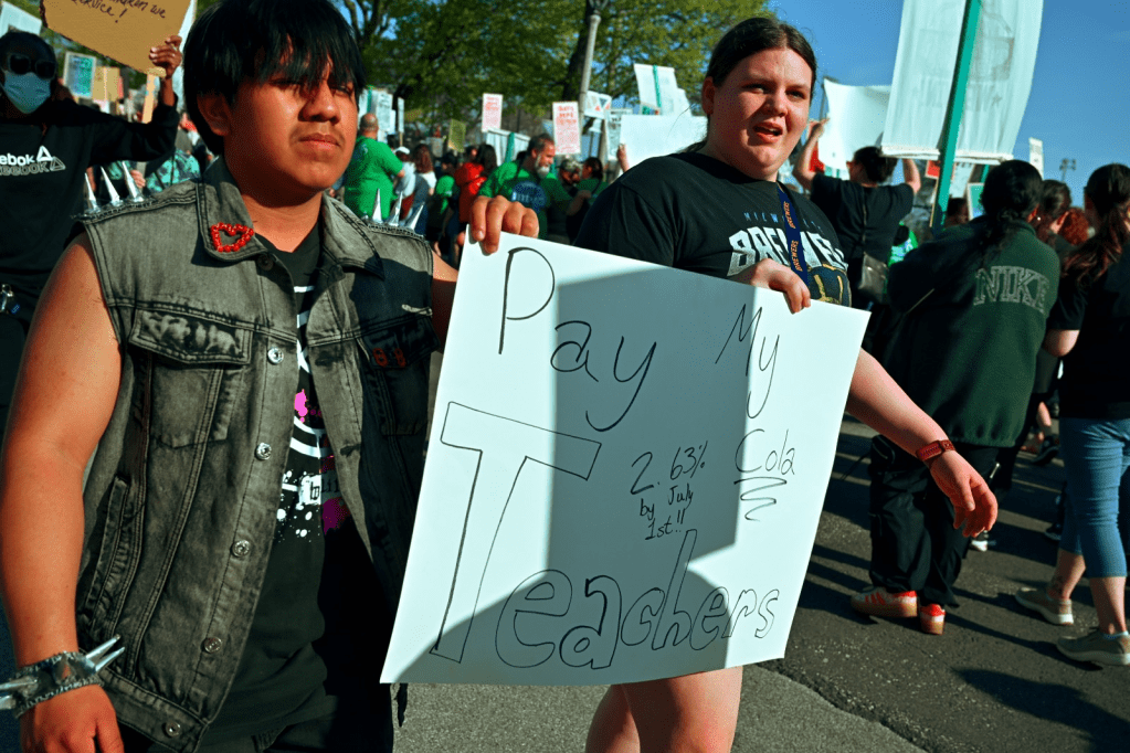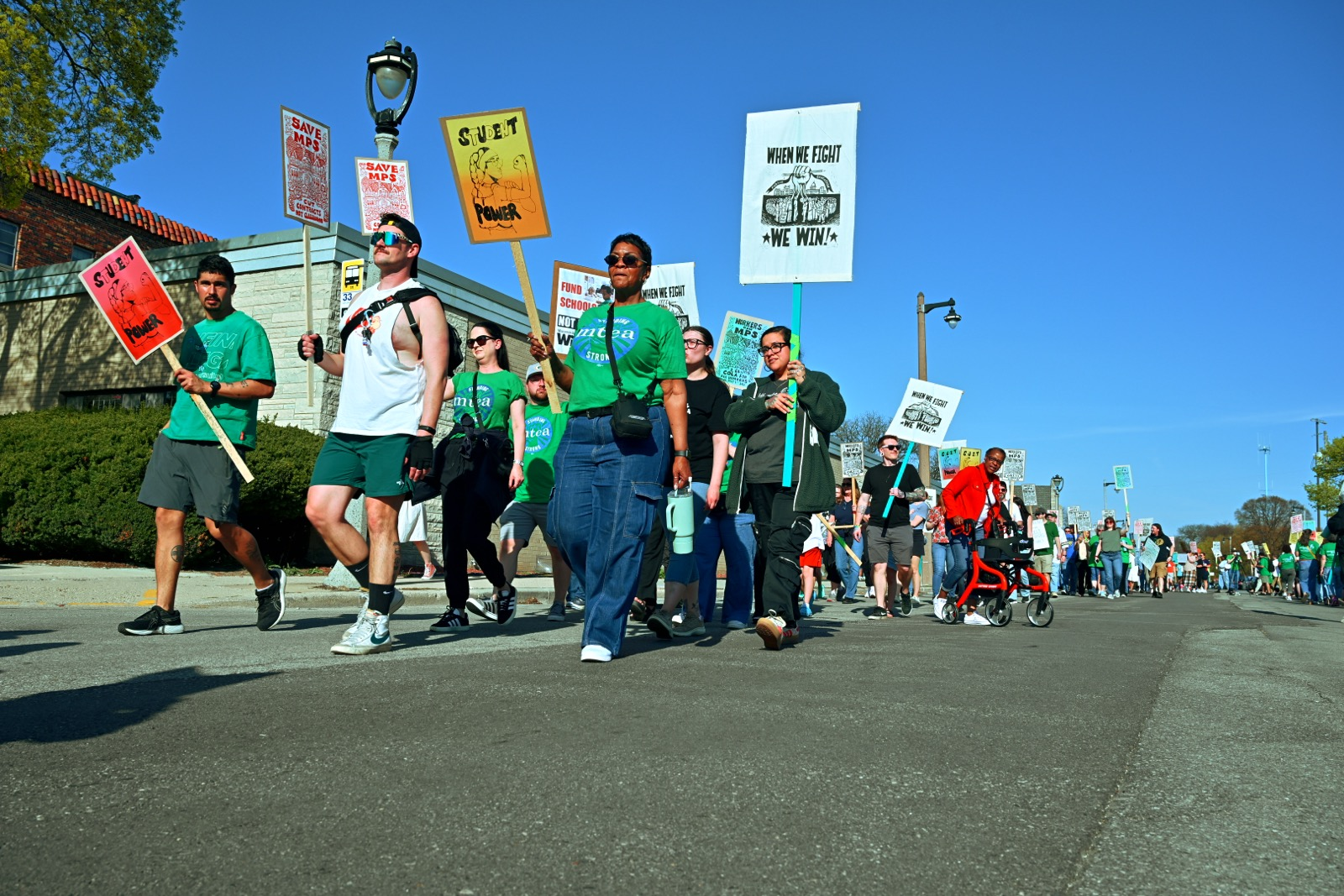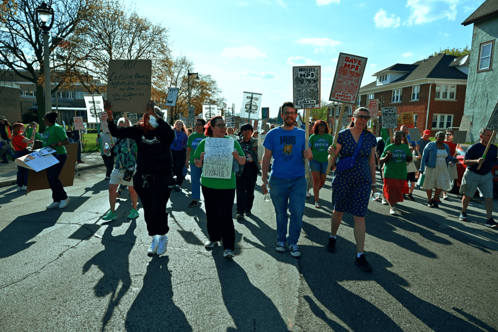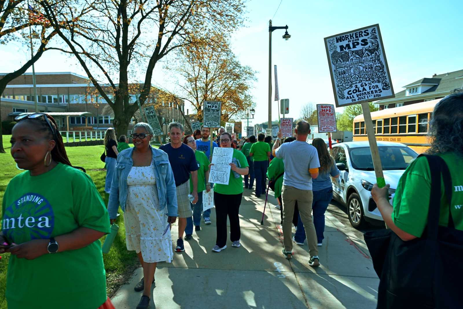 Categories Uncategorized Milwaukee Teachers, Students, Labor and Community Supporters March to Demand Wage Increases and Better Conditions Post author By WiBOPM Post date April 23, 2026 April 23, 2026 All Photos by Wisconsin Bail Out The People Movement Action sponsored by the MTEA and supported by many labor, community and student organizations Share this: Share on X (Opens in new window) X Share on Facebook (Opens in new window) Facebook Like Loading... Related ← WI BOPM 15th Anniversary Celebration April 25, 2026 in Madison: Speakers, Drag Show & More!