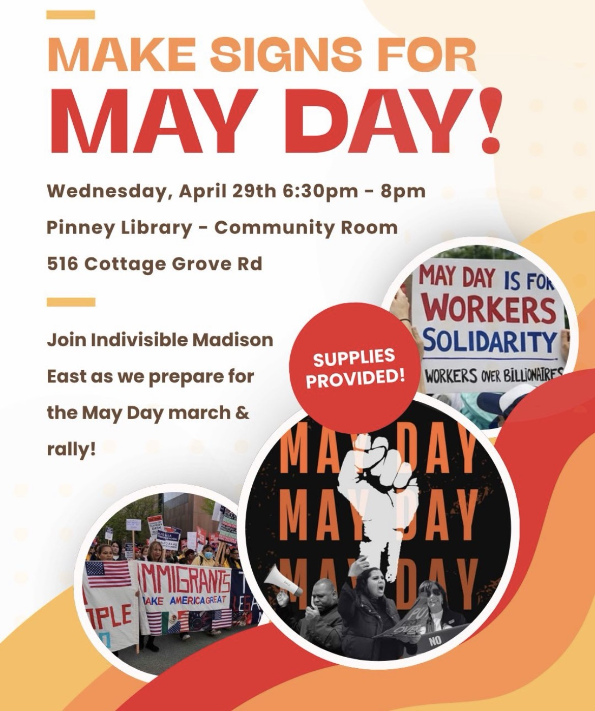 Categories Uncategorized Madison, April 29, 2026: Sign Making for May Day 2026 Post author By WiBOPM Post date April 28, 2026 Share this: Share on X (Opens in new window) X Share on Facebook (Opens in new window) Facebook Like Loading... Related ← Milwaukee, ‘The Six Billion Dollar Man’ Film Screening April 20-30, 2026