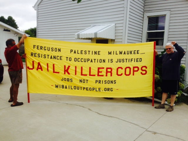 Banners produced by Wisconsin Bail Out the People Movement and friends over the years. If you like what you see, please consider purchasing more banner material for us!