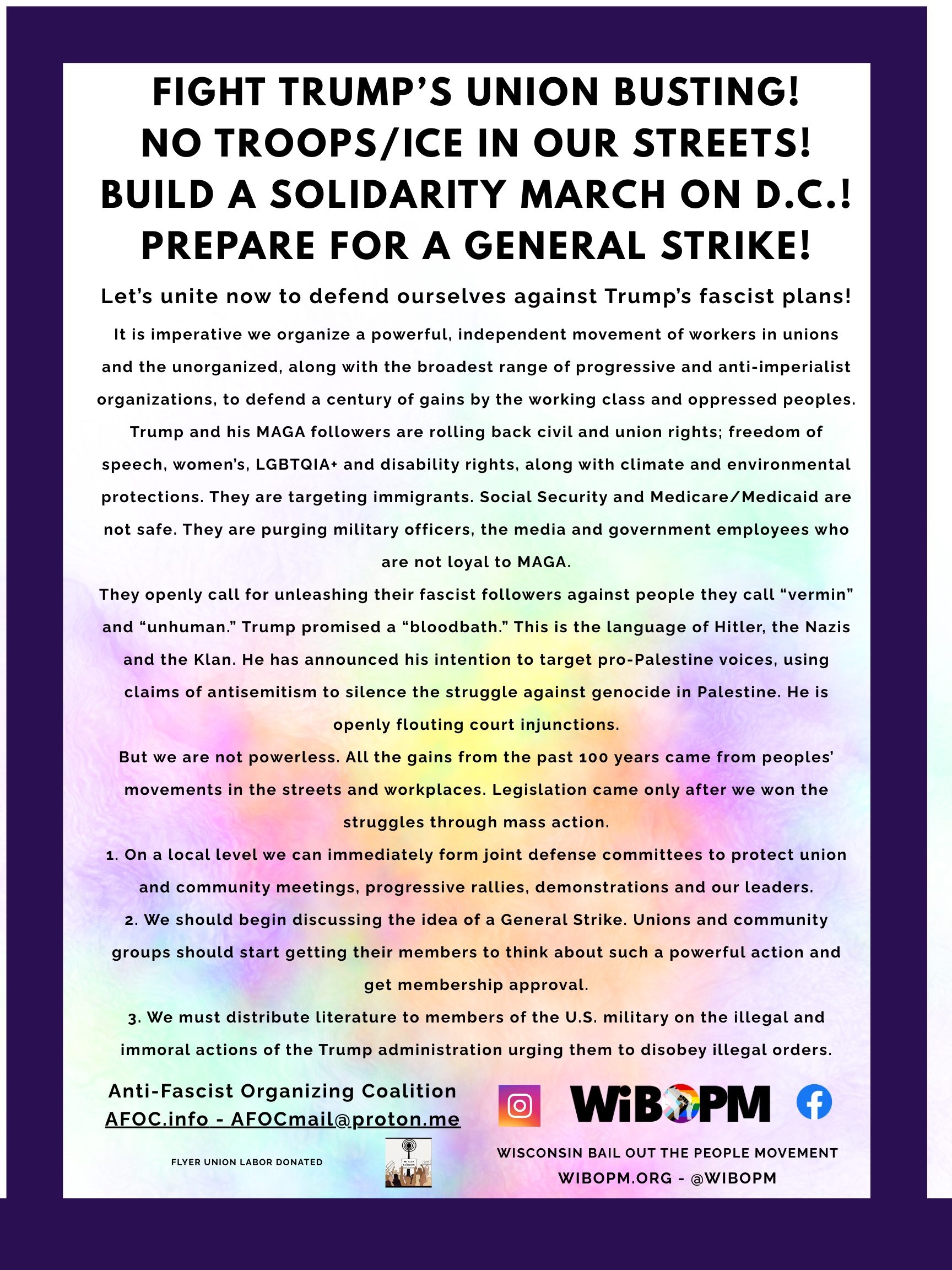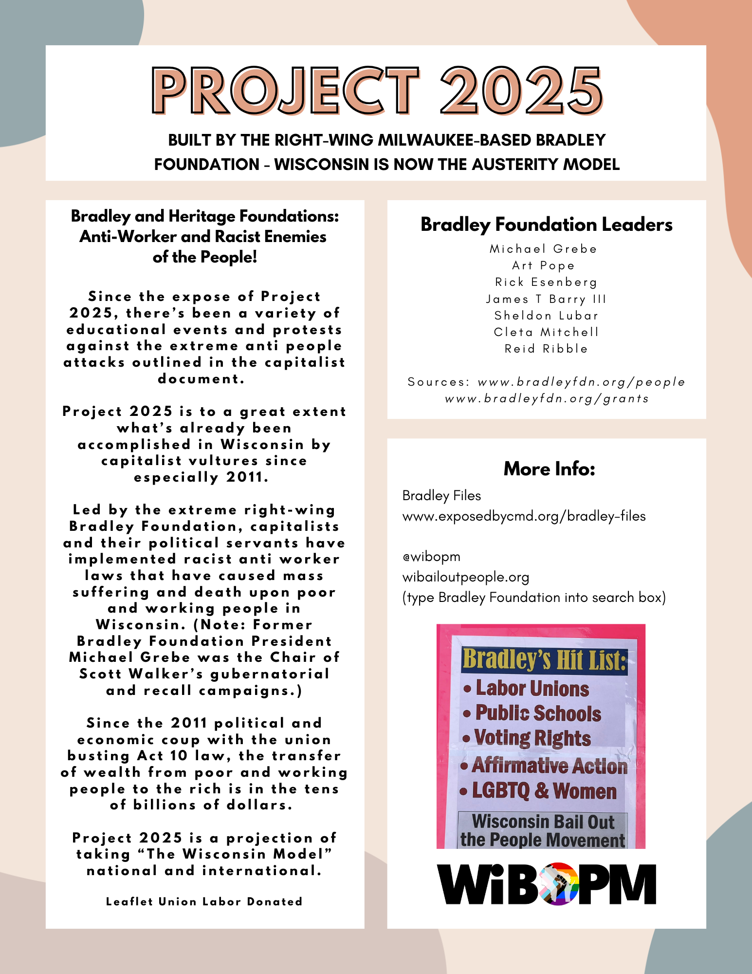 Flyers Flyers, pamphlets, and other literature produced by WIBOPM & Friends. Free to download, print, and use. WIBOPM End the Cuts – Fight or Starve! FlyerDownload Leslie Feinberg FlyerDownload Fight Raids and Deportations FlyerDownload Happy Pride Month PosterDownload Project 2025 FlyerDownload